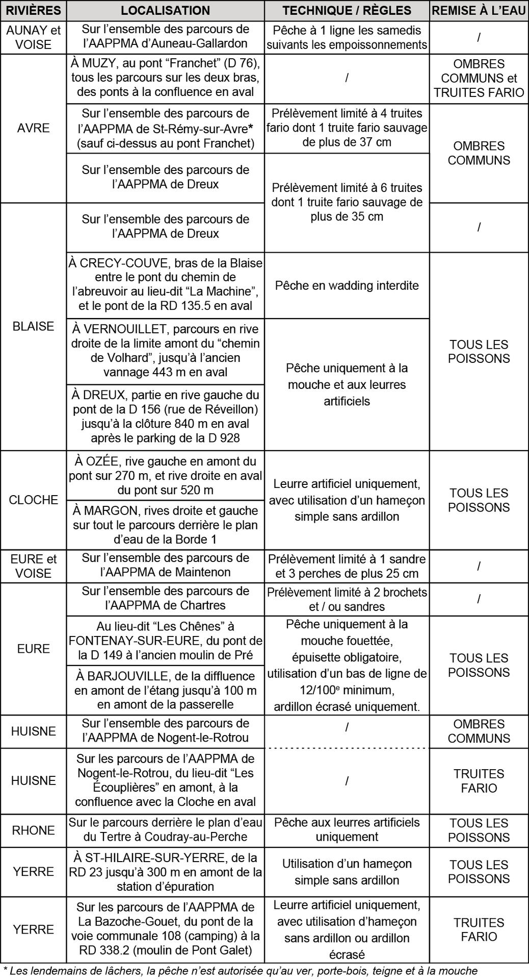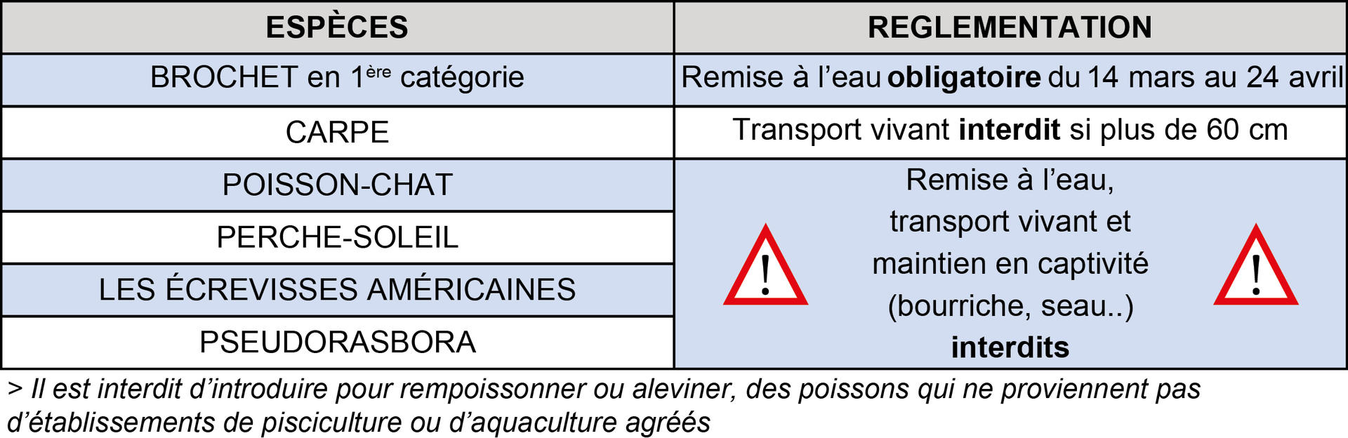 • Seuls les parcours rattachés à une AAPPMA sont autorisés à la pêche (voir carte Géopêche). En dehors de ceux-ci, le pêcheur doit posséder une autorisation du propriétaire